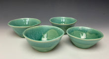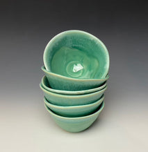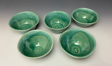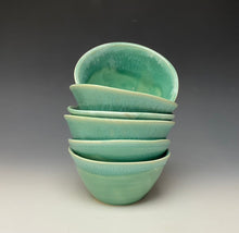 Each mini dish was hand made on the potters wheel from stoneware clay by Lindsey and a wavy rim was created to give the piece some movement. After the initial bisque firing, it was glazed in my "seafoam green" glaze which is a soft green color with white cascading down the sides of the bowl.