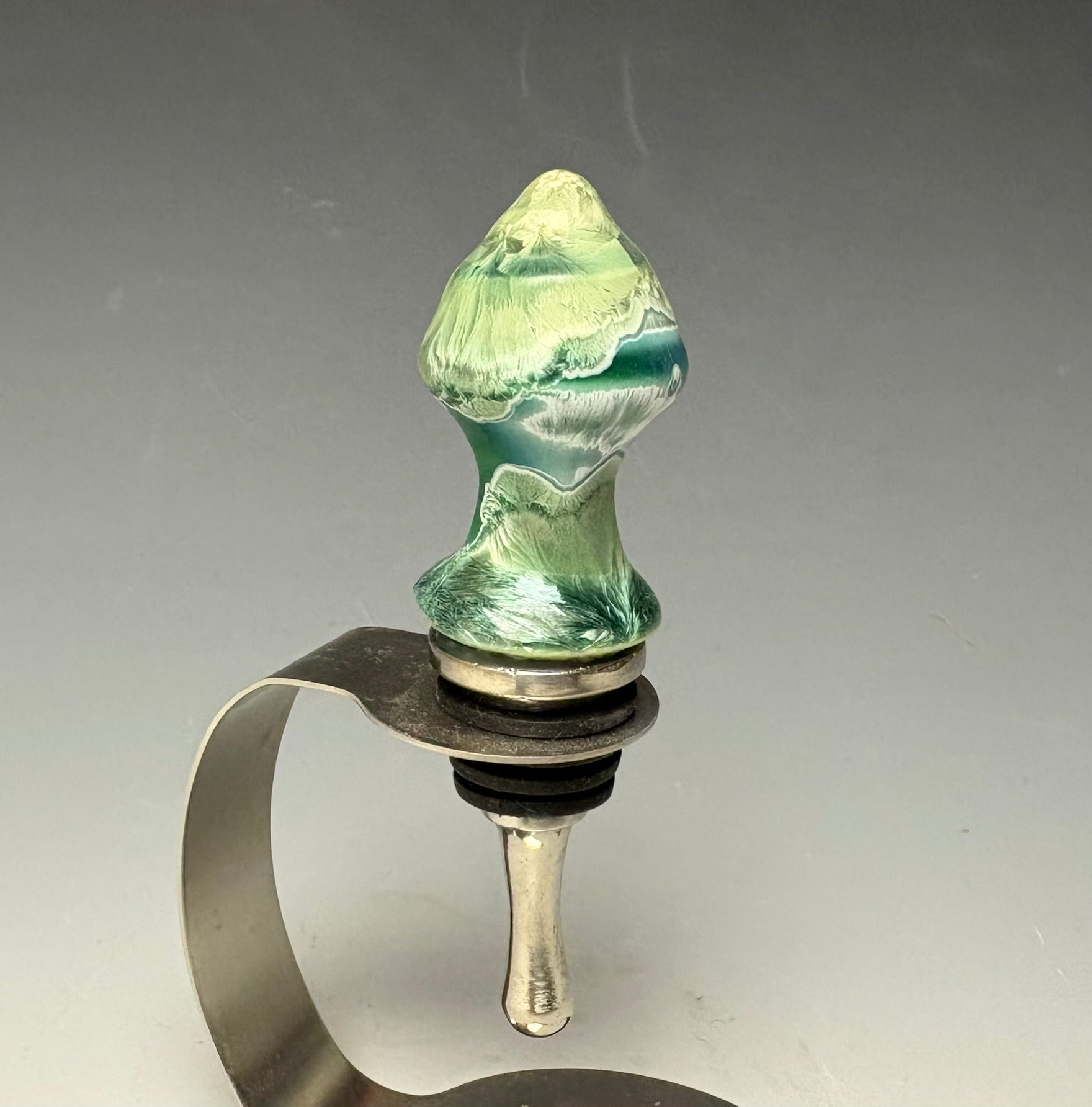 This piece was handmade on the potter's wheel by Lindsey from porcelain clay. It is glazed with my light green crystalline glaze with light green colored crystals on an light green background that gives a multitude of depth and dimension to this piece. The base is made from high quality, food grade stainless steel.