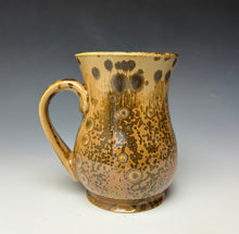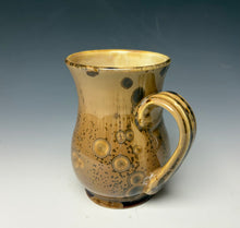 This piece was handmade on the potter's wheel by Lindsey from porcelain clay. It is glazed with my 'iced caramel' color. A light brown/bronze crystalline glaze with the caramel colored crystals wrapping around the cup.