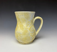 This piece was handmade on the potter's wheel by Lindsey from porcelain clay. It is glazed in an ivory color, with light tan/golden colored crystals on a pearlywhite background.