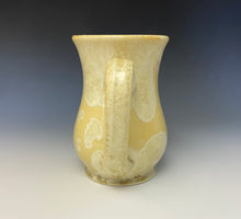The mug has golden yellow crystals on a yellow background. Truly one of a kind! The mug is perfect for coffee, tea, water, or any of you other favorite beverages.