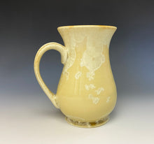 This mug was hand-made from porcelain clay on the potter's wheel. Due to the unique nature of crystalline glazes, no two pieces are ever alike. The zinc crystals are actually grown during the firing and cooling process. The time and temperature must be accurate in order to achieve crystal growth on the piece.