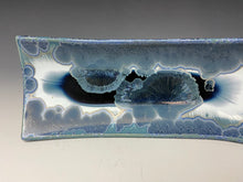 This tray was hand-made from porcelain clay with a unique, organic shape. Due to the unique nature of crystalline glazes, no two pieces are ever alike. The zinc crystals are actually grown during the firing and cooling process. The time and temperature must be accurate in order to achieve crystal growth on the piece.