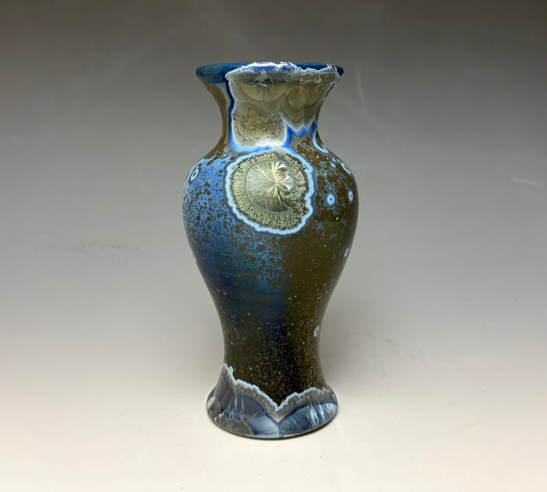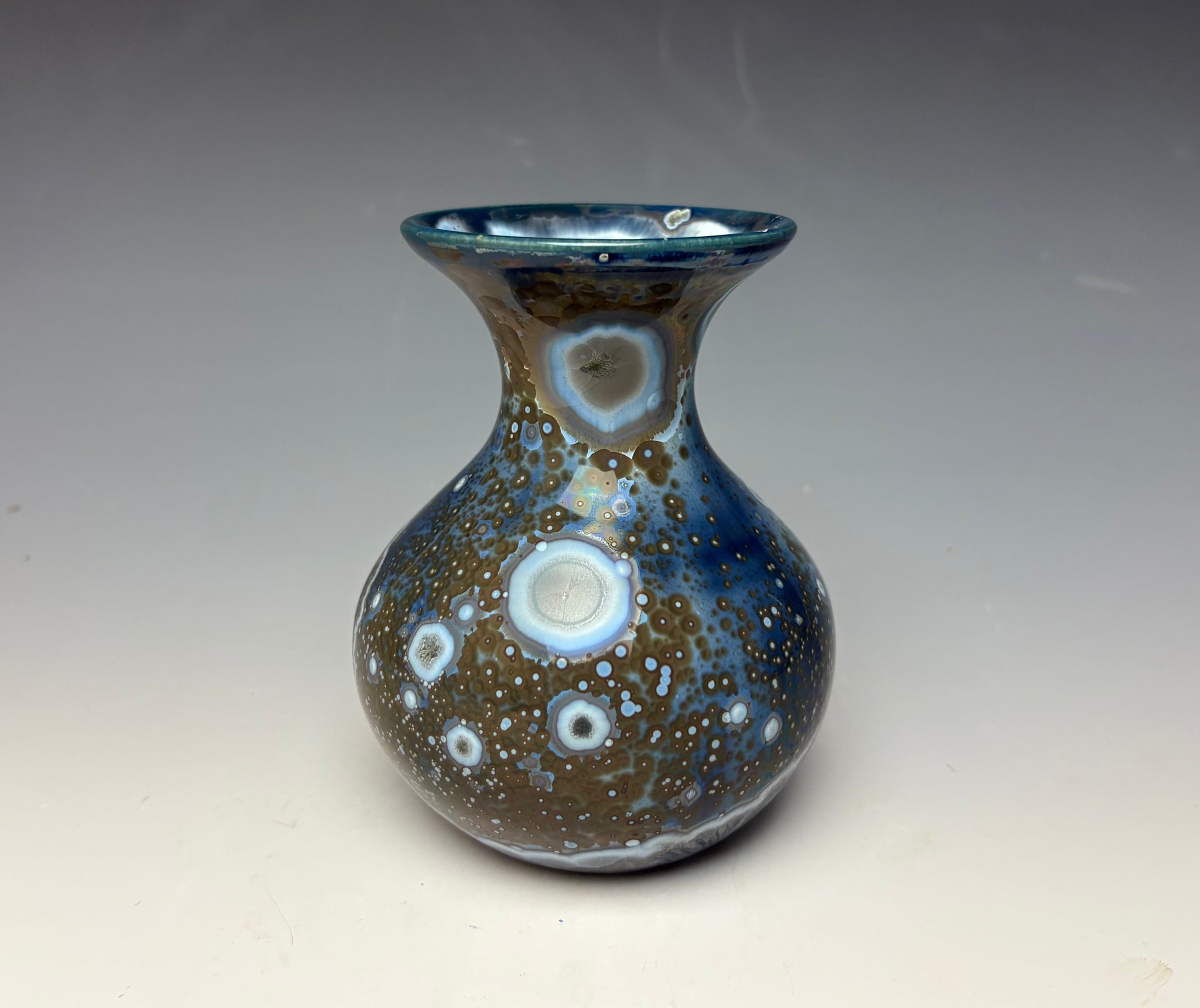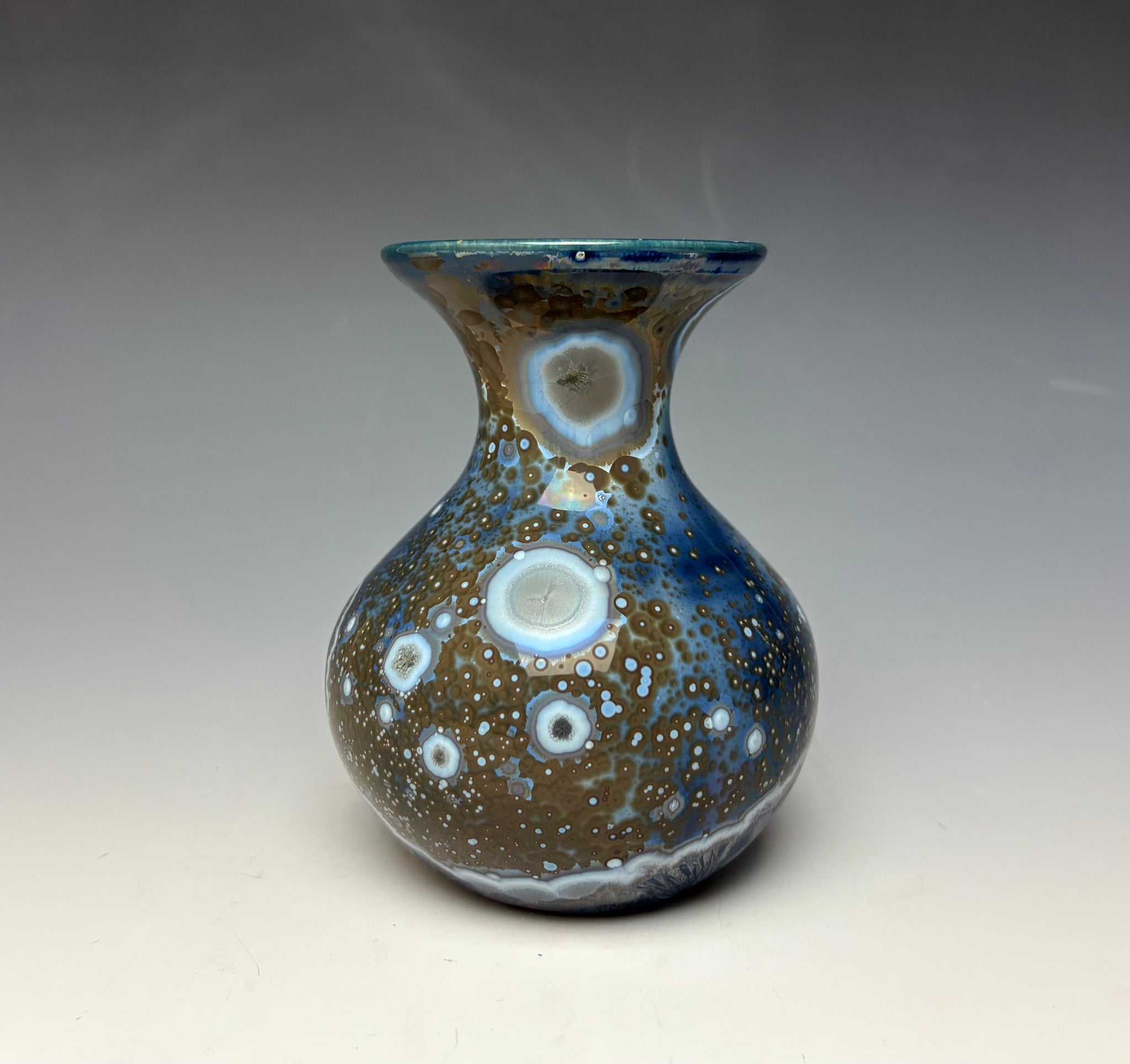 Due to the unique nature of crystalline glazes, no two pieces are ever alike. The crystals are actually grown during the firing and cooling process (which reaches over 2300 degrees Fahrenheit). The time and temperature must be accurate in order to achieve crystal growth on the piece.