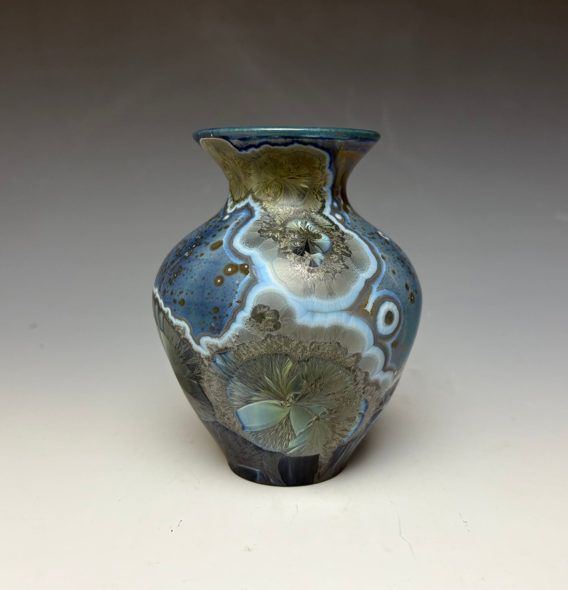 Due to the unique nature of crystalline glazes, no two pieces are ever alike. The crystals are actually grown during the firing and cooling process (which reaches over 2300 degrees Fahrenheit). The time and temperature must be accurate in order to achieve crystal growth on the piece.