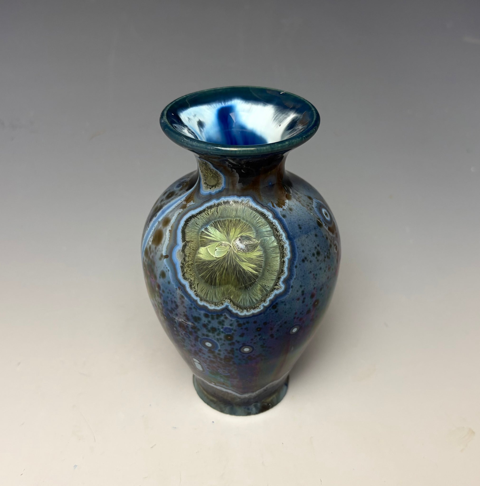 Due to the unique nature of crystalline glazes, no two pieces are ever alike. The crystals are actually grown during the firing and cooling process (which reaches over 2300 degrees Fahrenheit). The time and temperature must be accurate in order to achieve crystal growth on the piece.