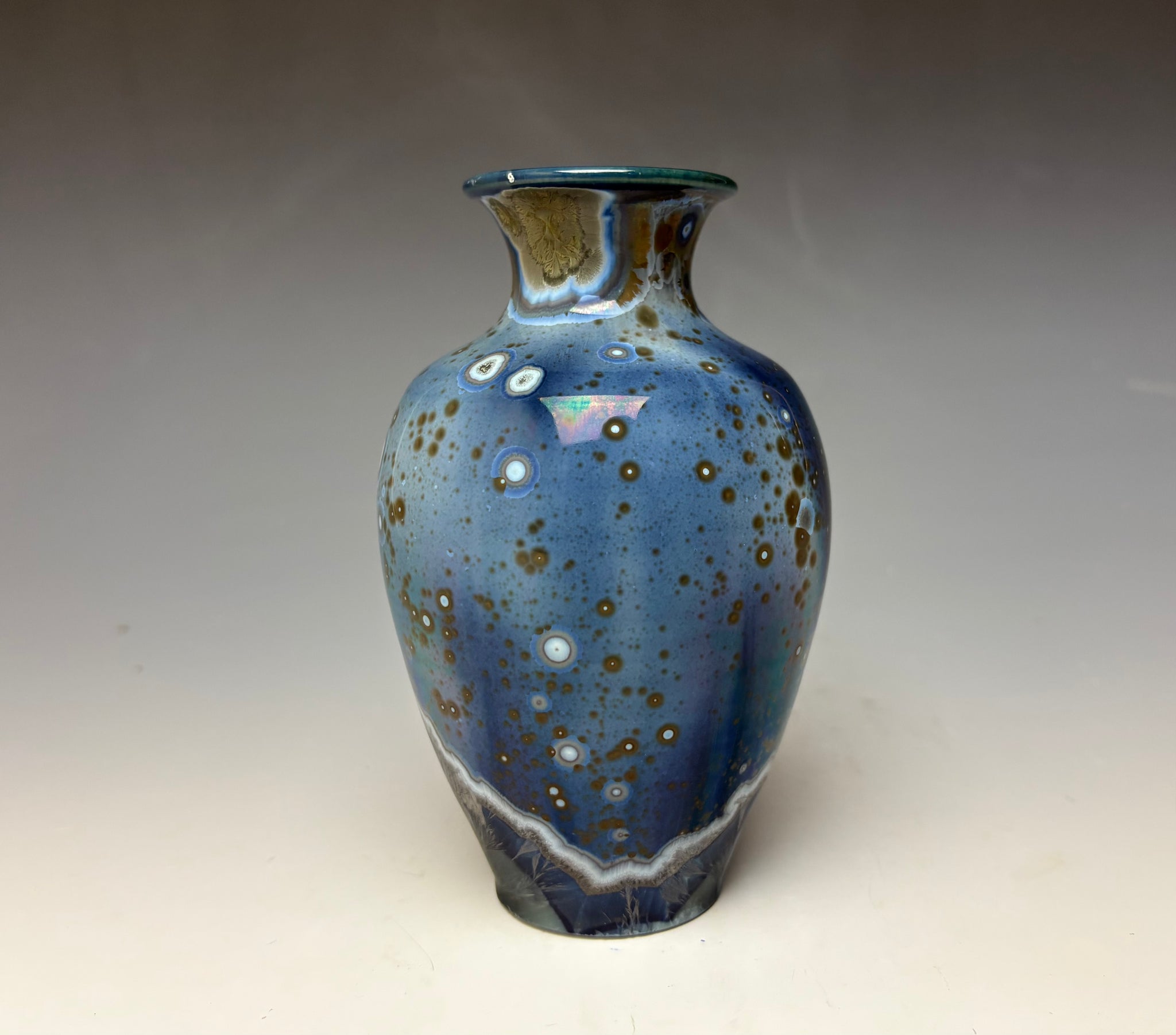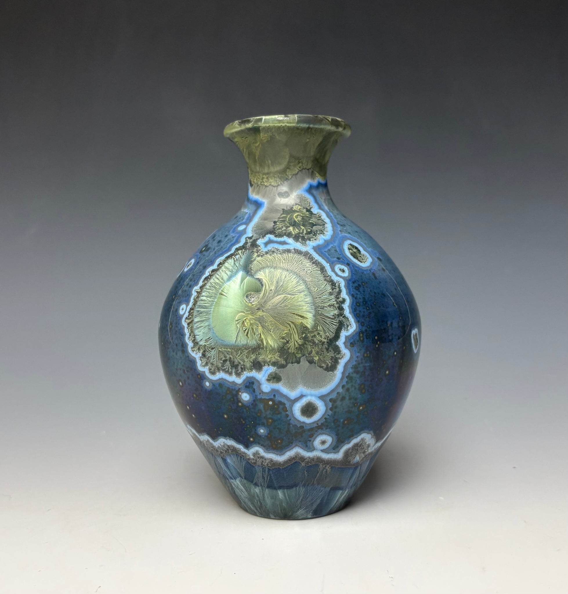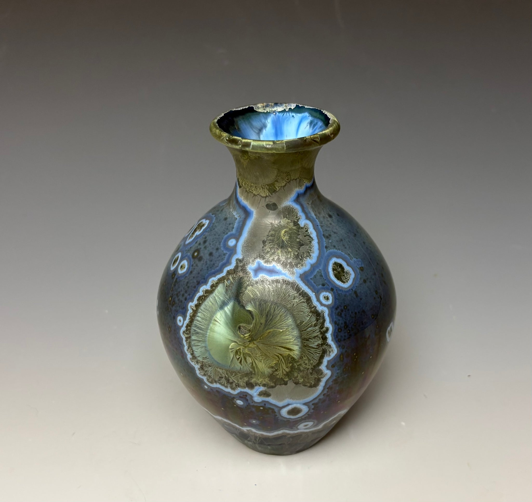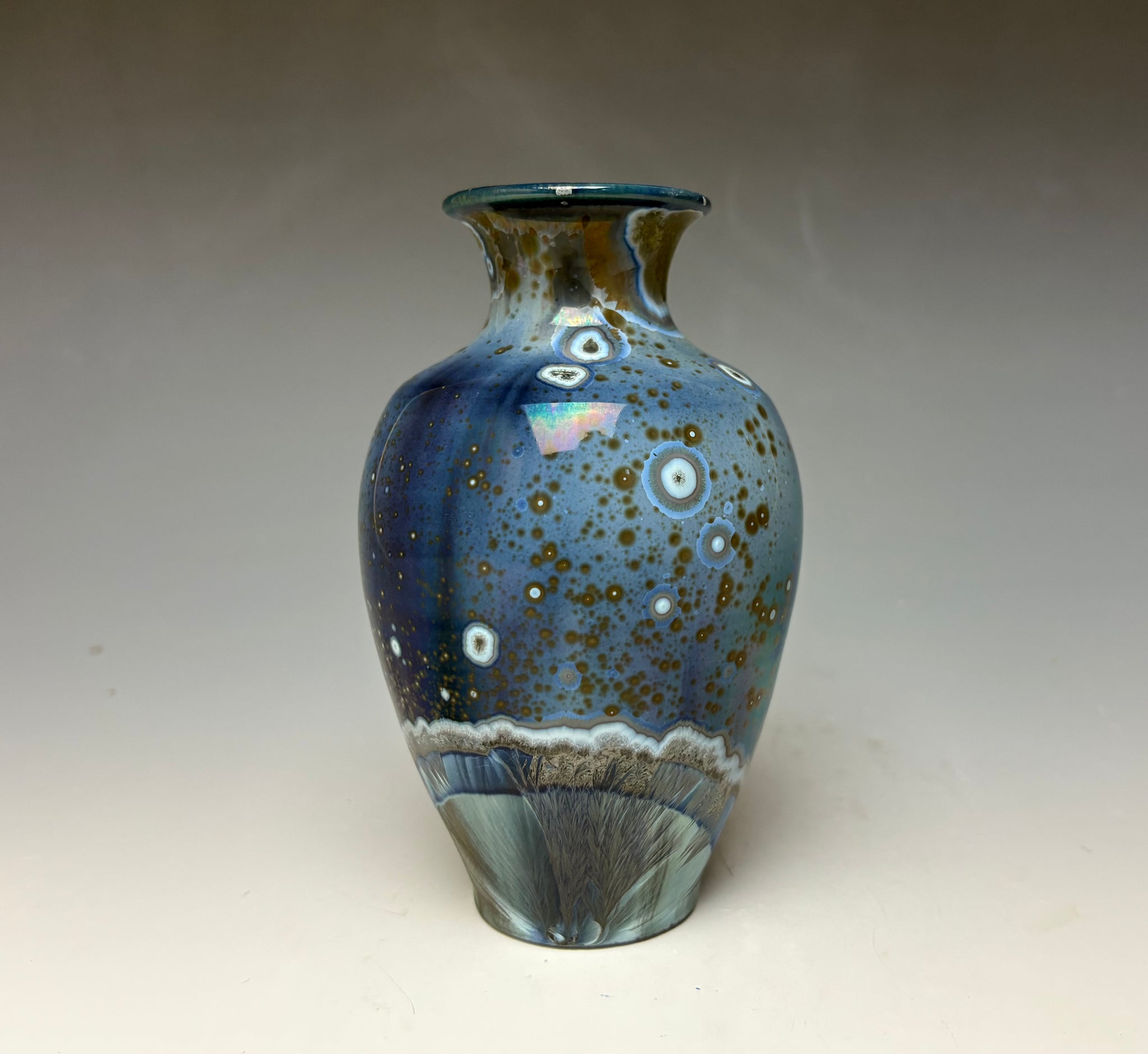 Due to the unique nature of crystalline glazes, no two pieces are ever alike. The crystals are actually grown during the firing and cooling process (which reaches over 2300 degrees Fahrenheit). The time and temperature must be accurate in order to achieve crystal growth on the piece.