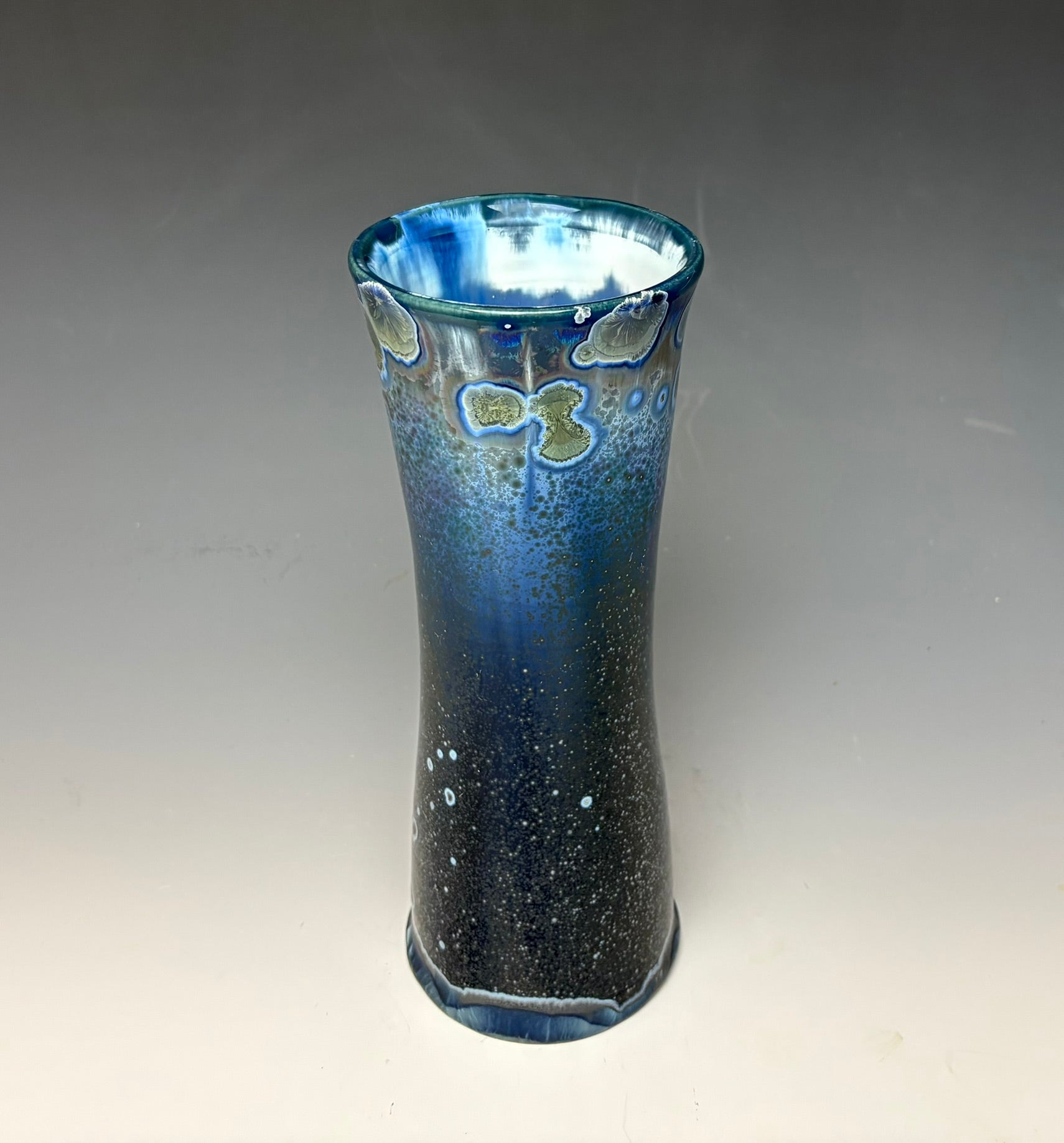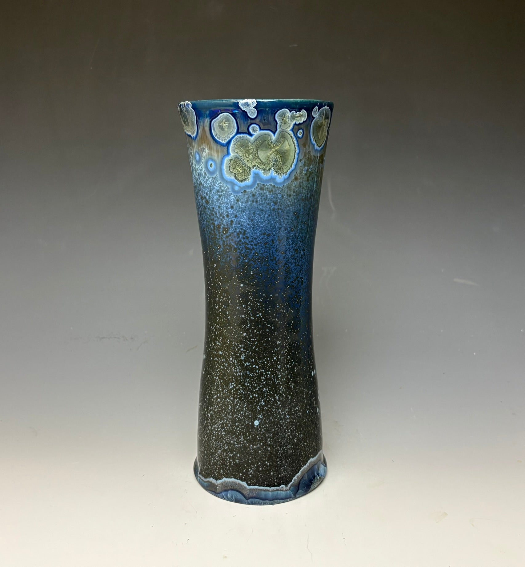 Due to the unique nature of crystalline glazes, no two pieces are ever alike. The crystals are actually grown during the firing and cooling process (which reaches over 2300 degrees Fahrenheit). The time and temperature must be accurate in order to achieve crystal growth on the piece.