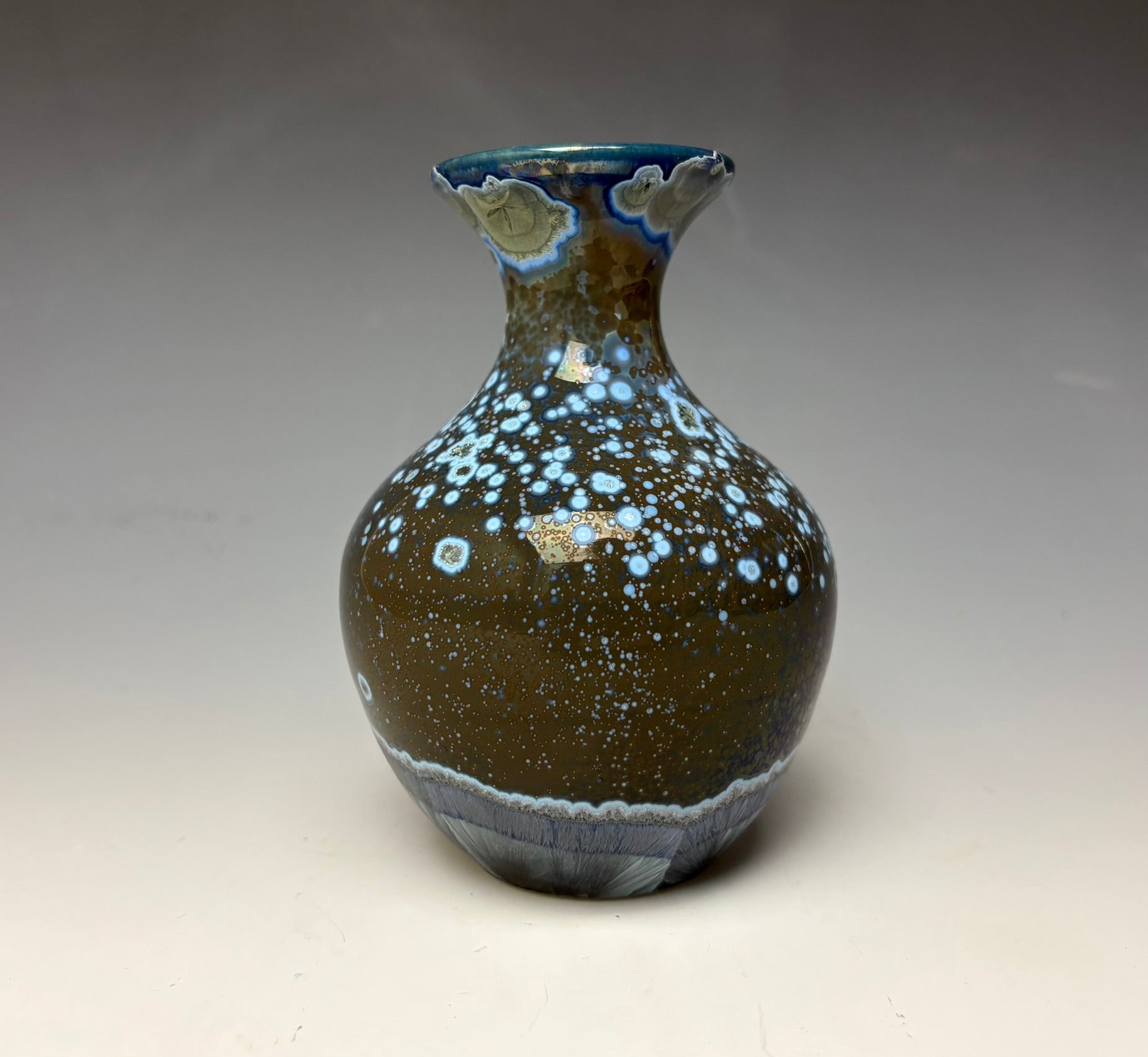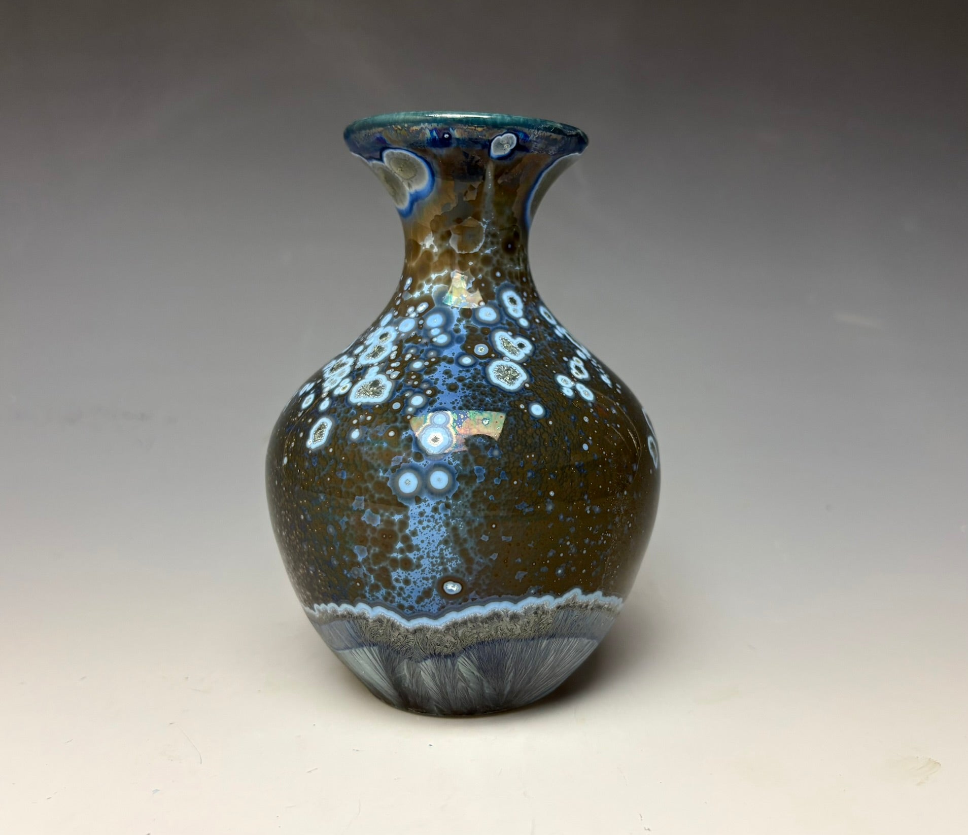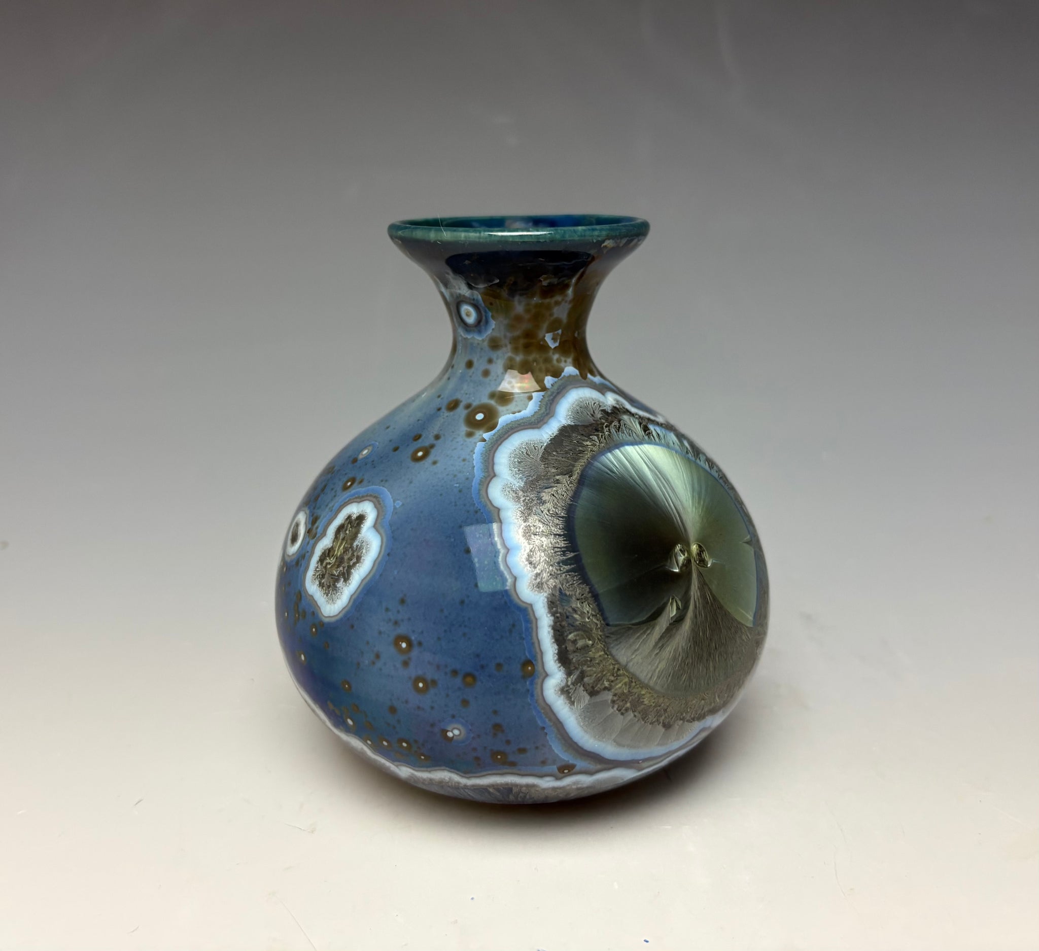 Due to the unique nature of crystalline glazes, no two pieces are ever alike. The crystals are actually grown during the firing and cooling process (which reaches over 2300 degrees Fahrenheit). The time and temperature must be accurate in order to achieve crystal growth on the piece.