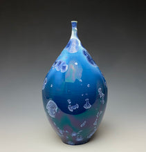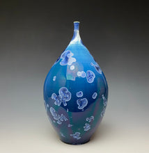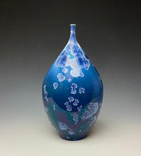 The piece has lovely deep blue/silver zinc crystals on a deep blue and white background. These crystals actually GROW during the firing and cooling process! No two pieces are ever alike. The bright blue crystals have a silver shimmer and dance about the dark blue/white satiny background.