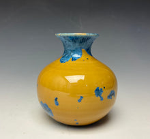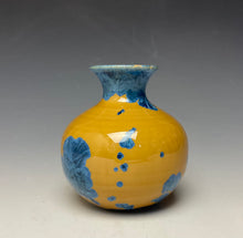 This vase was hand-made from porcelain clay on the potter's wheel. Due to the unique nature of crystalline glazes, no two pieces are ever alike. The zinc crystals are actually grown during the firing and cooling process. The time and temperature must be accurate in order to achieve crystal growth on the piece.