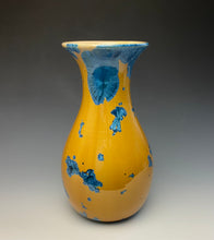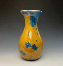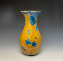 This vase was hand-made from porcelain clay on the potter's wheel. Due to the unique nature of crystalline glazes, no two pieces are ever alike. The zinc crystals are actually grown during the firing and cooling process. The time and temperature must be accurate in order to achieve crystal growth on the piece.
