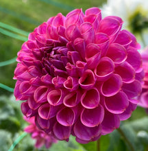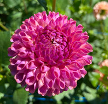 Dahlia ‘Caitlin’s Joy’ is a lovely variety that perfectly exhibits the precise geometry of a ball dahlia. Produces long, straight stems which are excellent for cutting. Deep, rich coloring in the purple to pink hues. Photographing this color can be challenging- it looks more purple than pink in real life.