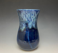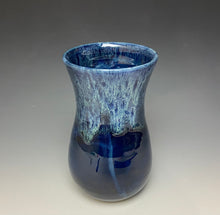 The glaze is a new version of my "Deep Blue" color- a deep blue with white breaking over the edges, like waves breaking on the shore. This is made from stoneware clay was fired in an electric kiln to cone 6 (~2200 degrees F).