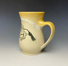 The mug was thrown on the potter’s wheel and the horse was hand-painted on before firing. The mug is made from stoneware clay was fired in an electric kiln to cone 6.