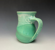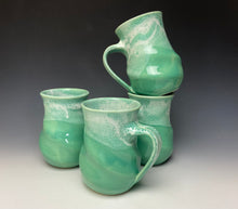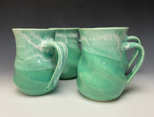 The glaze is a Bermuda green with white breaking over the edges. They are made from stoneware clay were fired in an electric kiln to cone 5 (~2200 degrees F). Please note that when ordering multiples, there will be slight differences in each mug. Due to the handmade nature of these items, no two pieces are ever alike.
