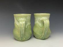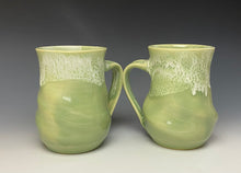 The glaze is a 'key lime pie' glaze which is a light greens with white breaking over the edges. They are made from stoneware clay were fired in an electric kiln to cone 5 (~2200 degrees F). Please note that when ordering multiples, there will be slight differences in each mug. Due to the handmade nature of these items, no two pieces are ever alike.