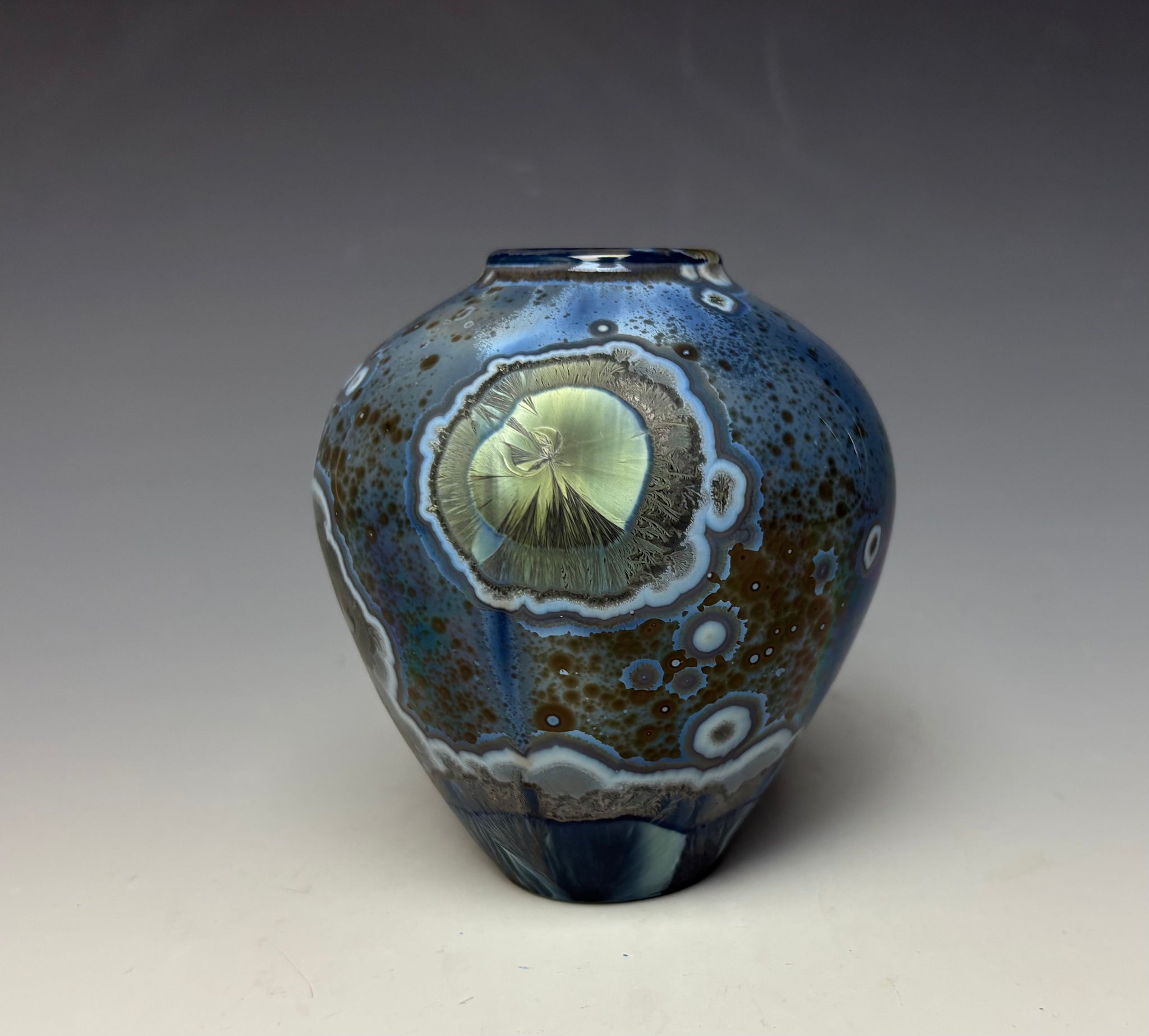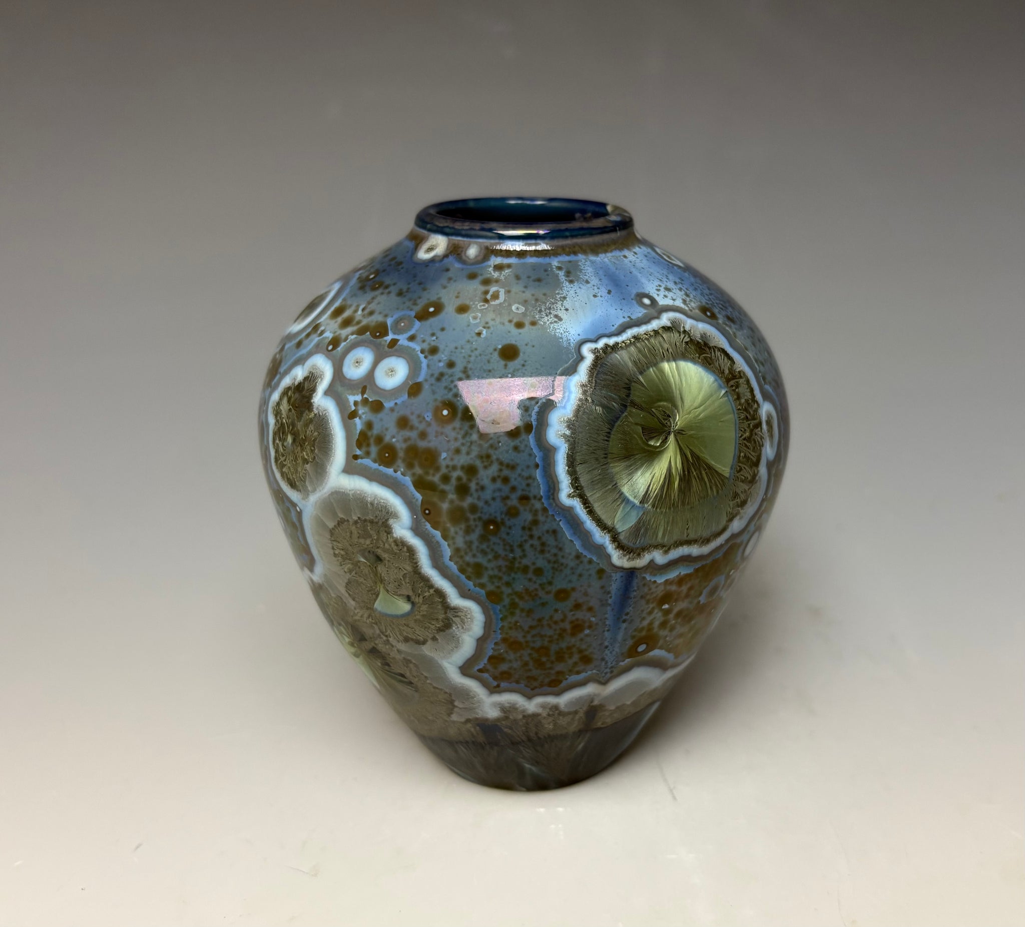 Due to the unique nature of crystalline glazes, no two pieces are ever alike. The crystals are actually grown during the firing and cooling process (which reaches over 2300 degrees Fahrenheit). The time and temperature must be accurate in order to achieve crystal growth on the piece.