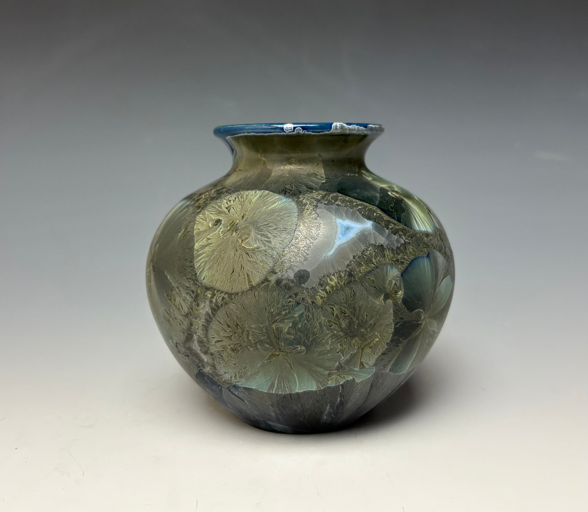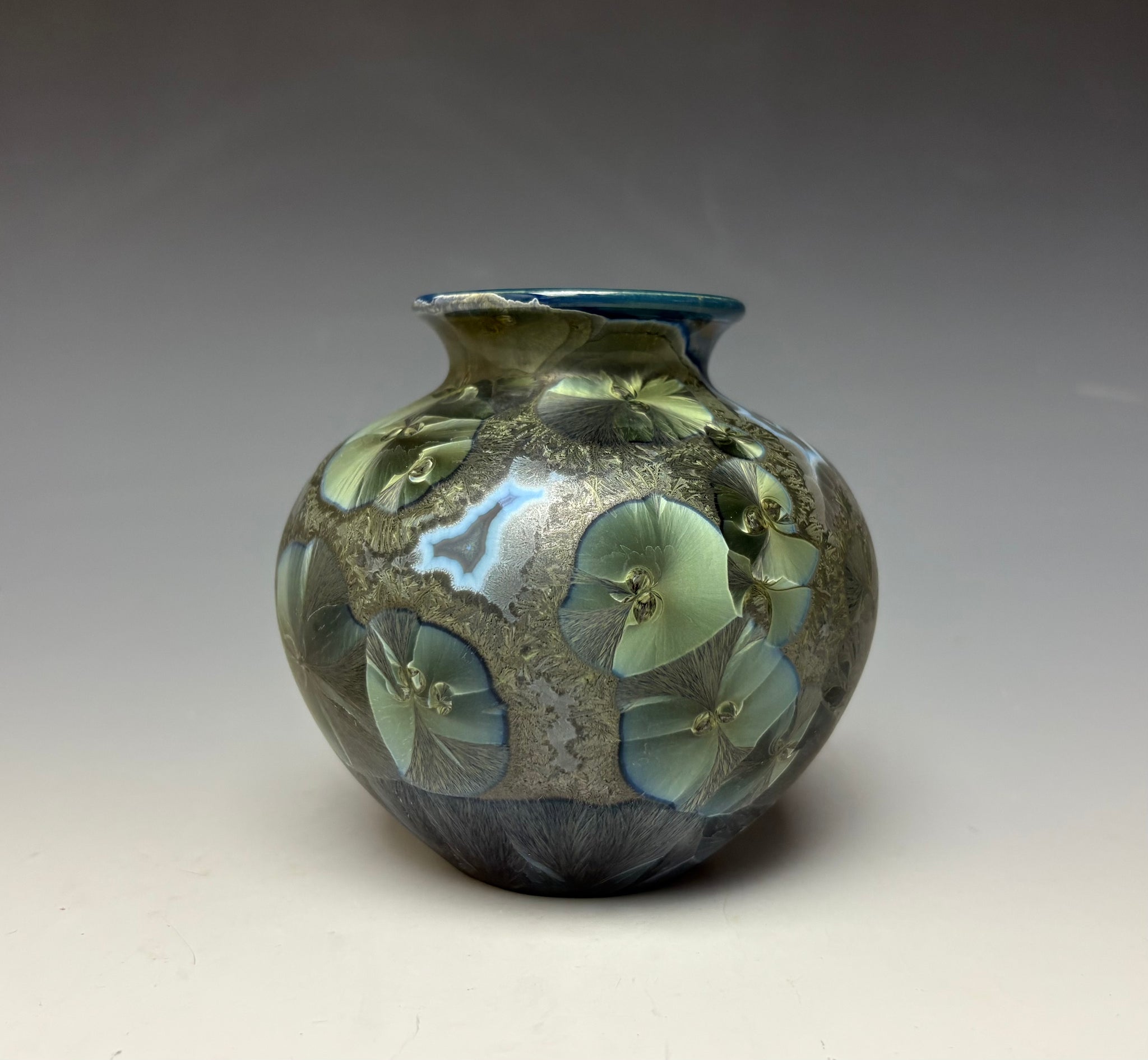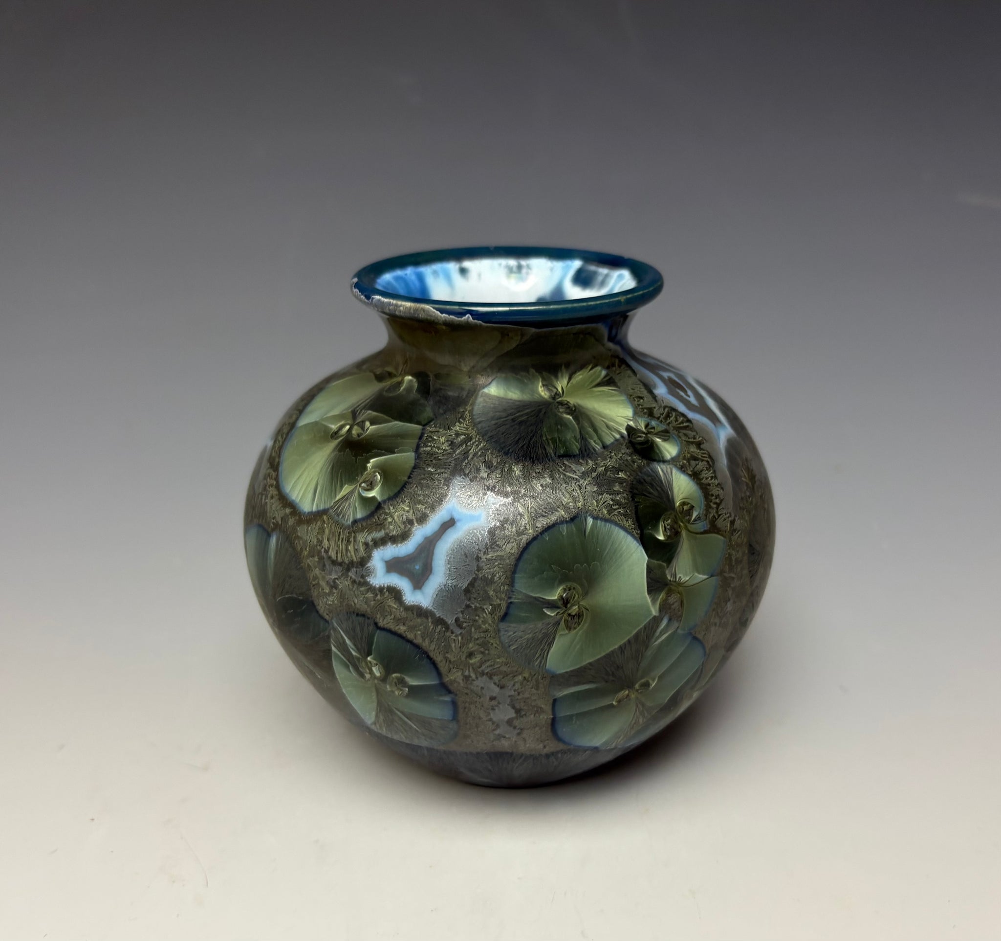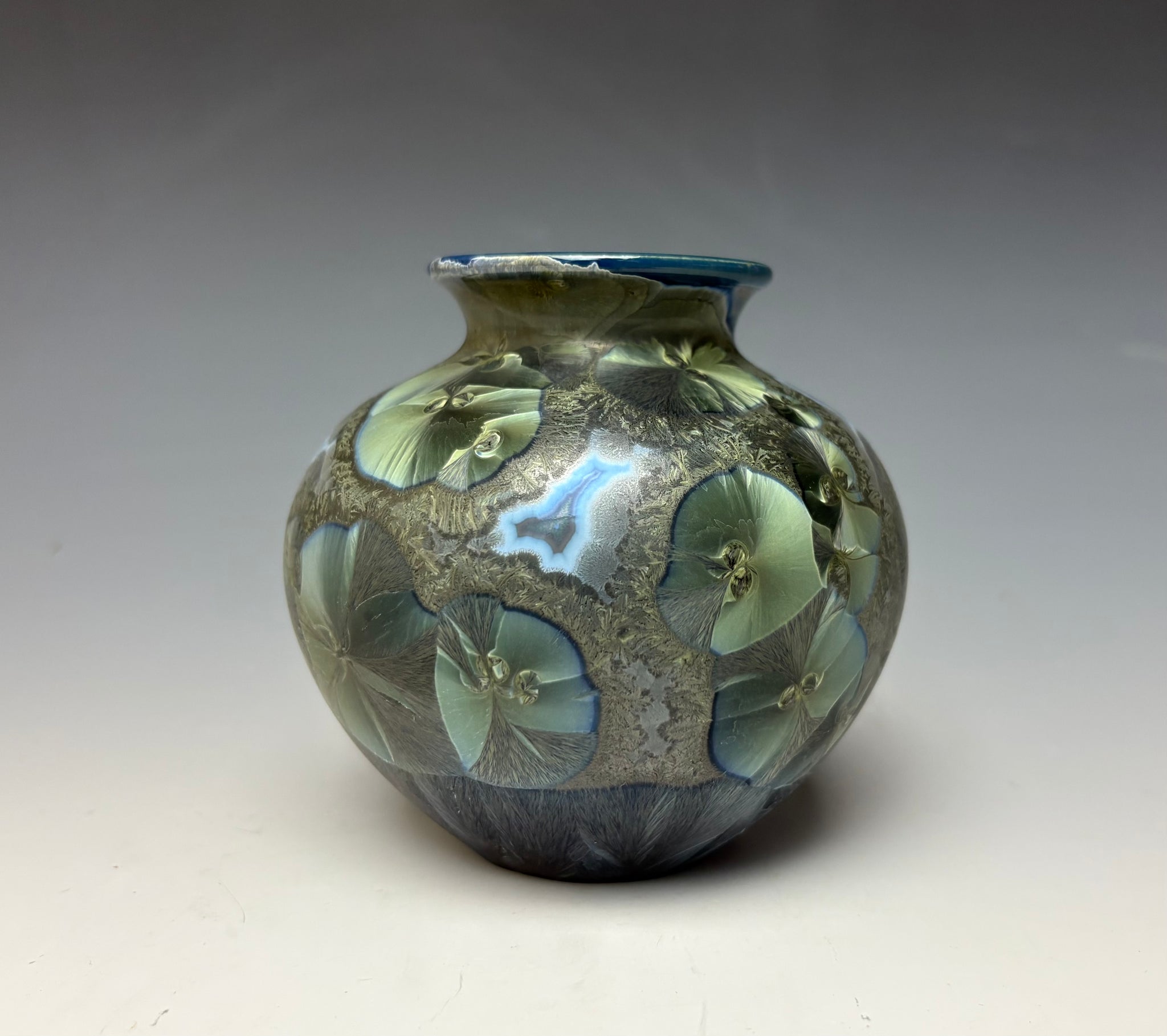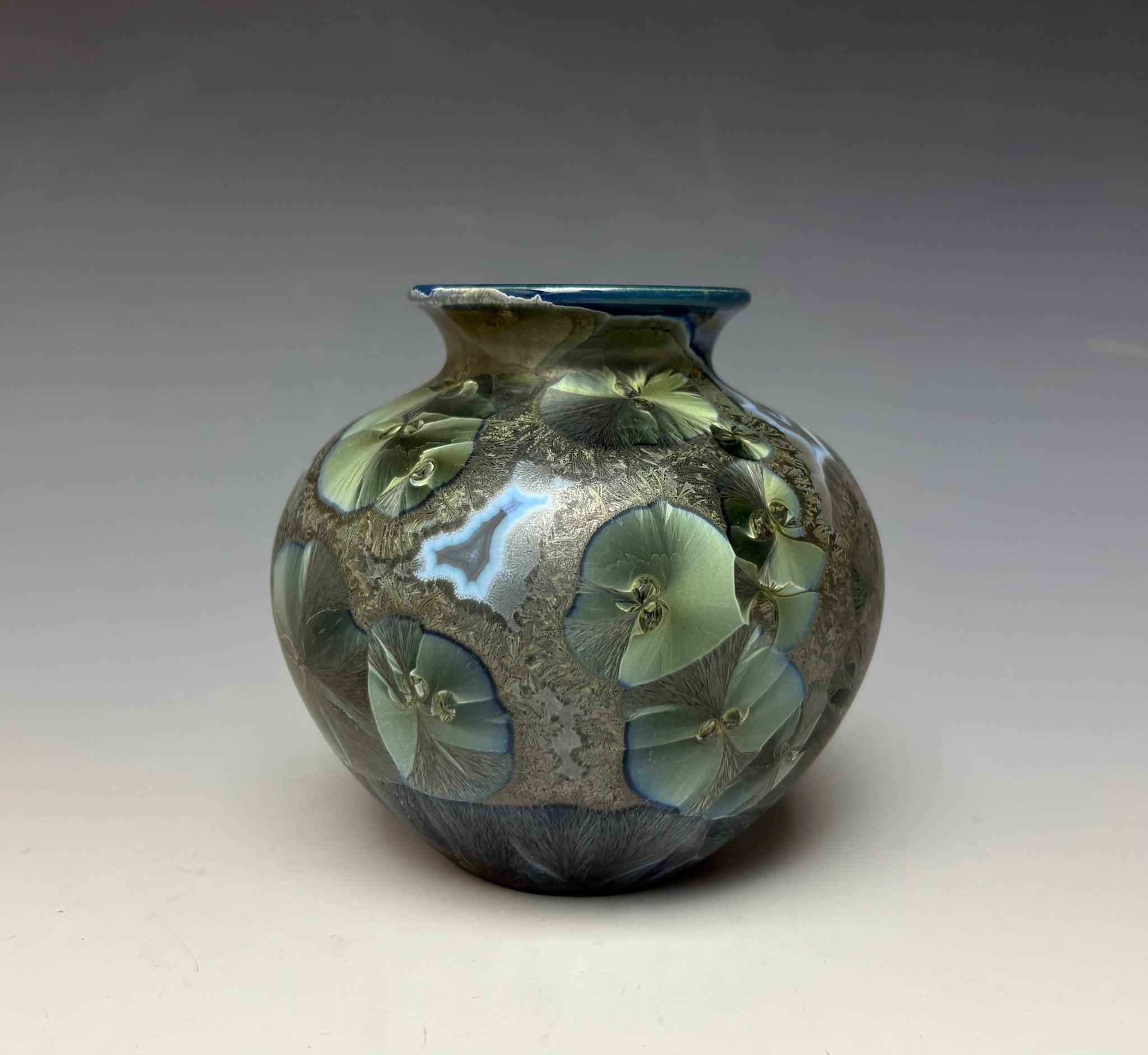 Due to the unique nature of crystalline glazes, no two pieces are ever alike. The crystals are actually grown during the firing and cooling process (which reaches over 2300 degrees Fahrenheit). The time and temperature must be accurate in order to achieve crystal growth on the piece.