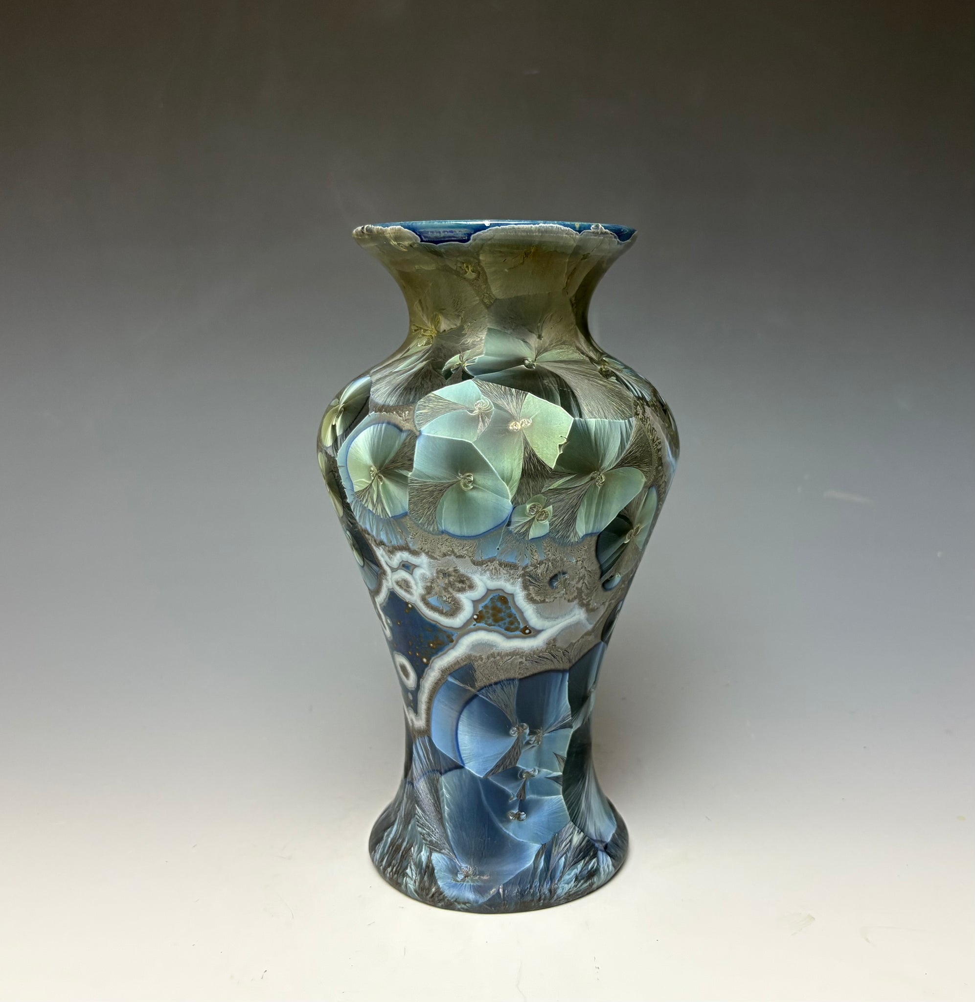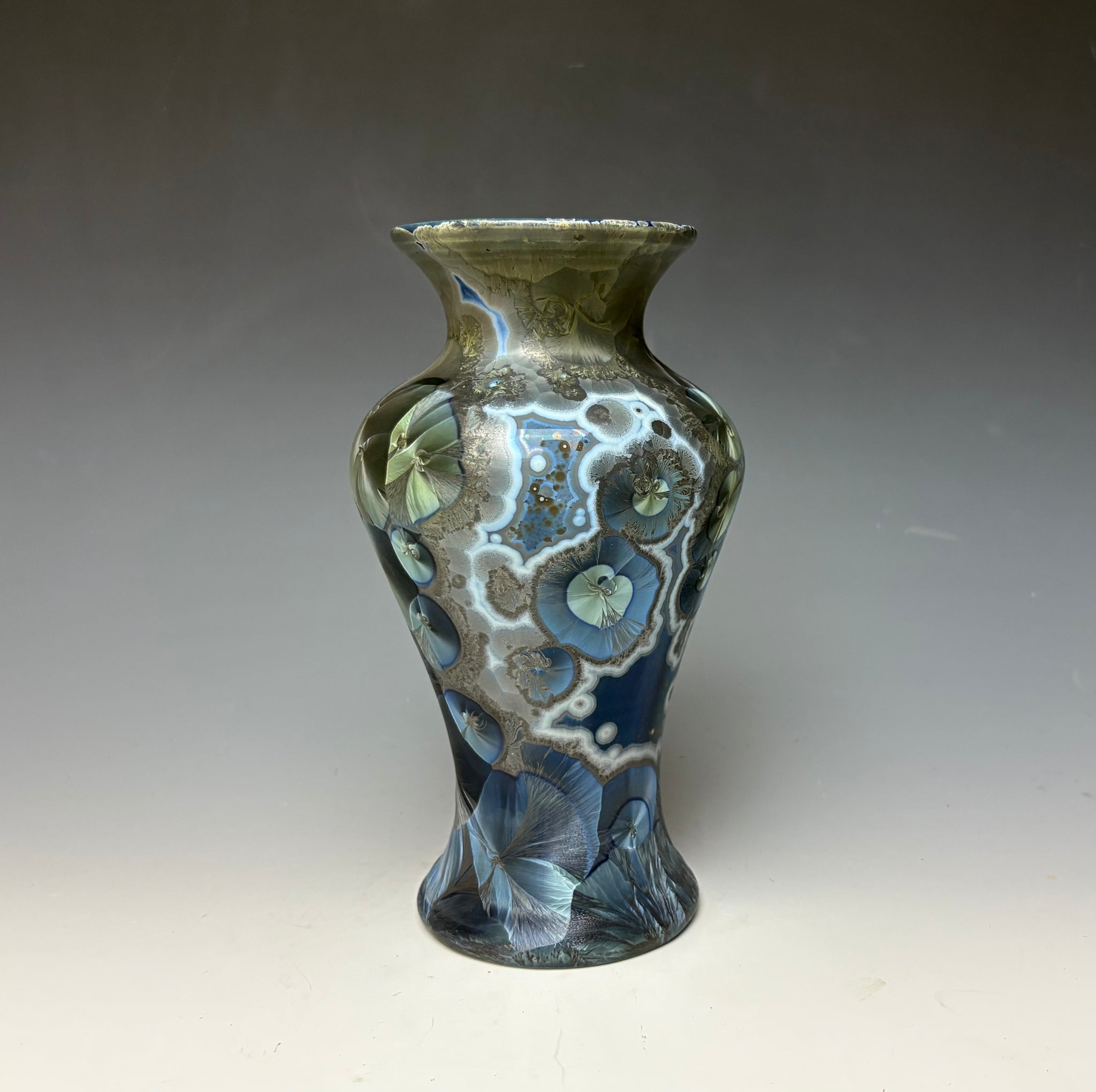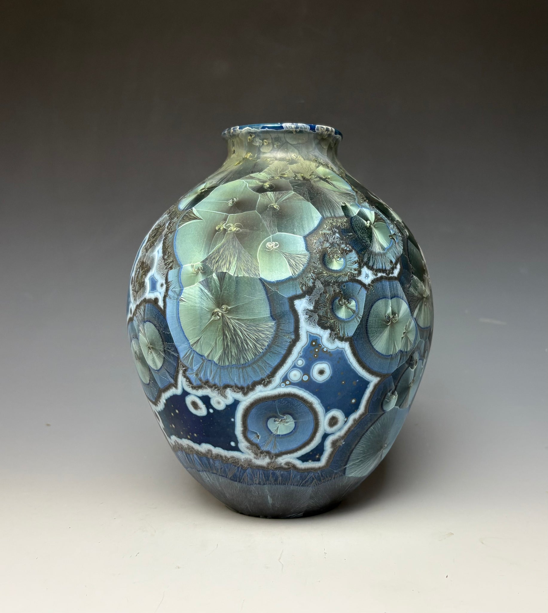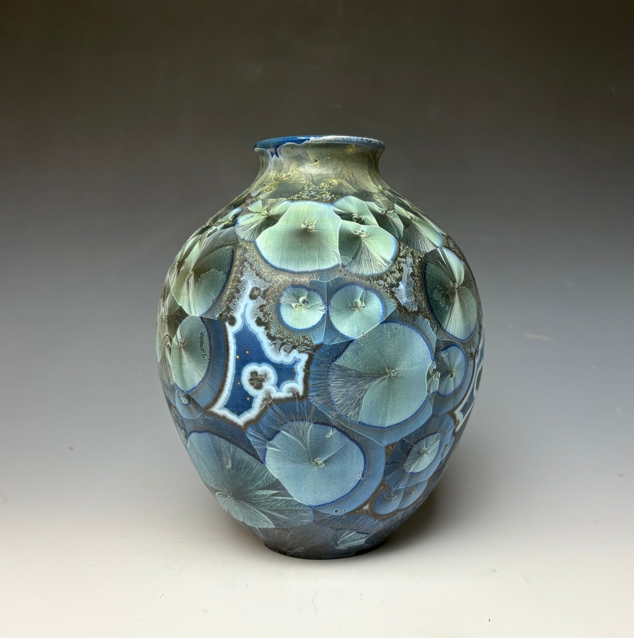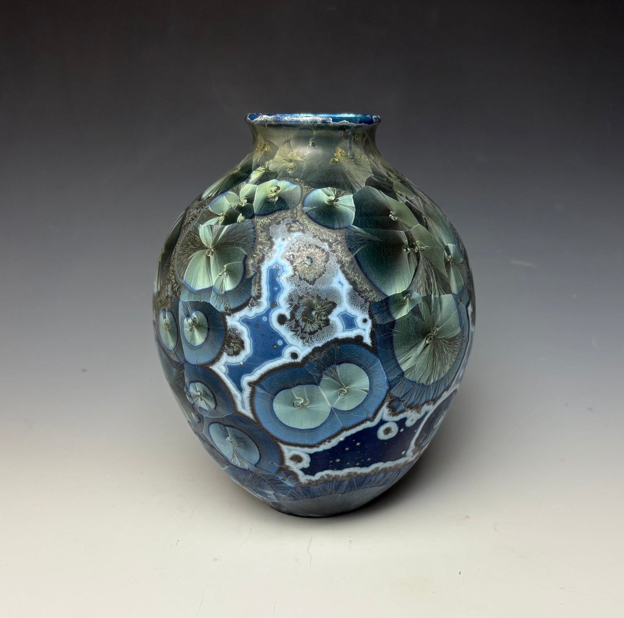 Due to the unique nature of crystalline glazes, no two pieces are ever alike. The crystals are actually grown during the firing and cooling process (which reaches over 2300 degrees Fahrenheit). The time and temperature must be accurate in order to achieve crystal growth on the piece.