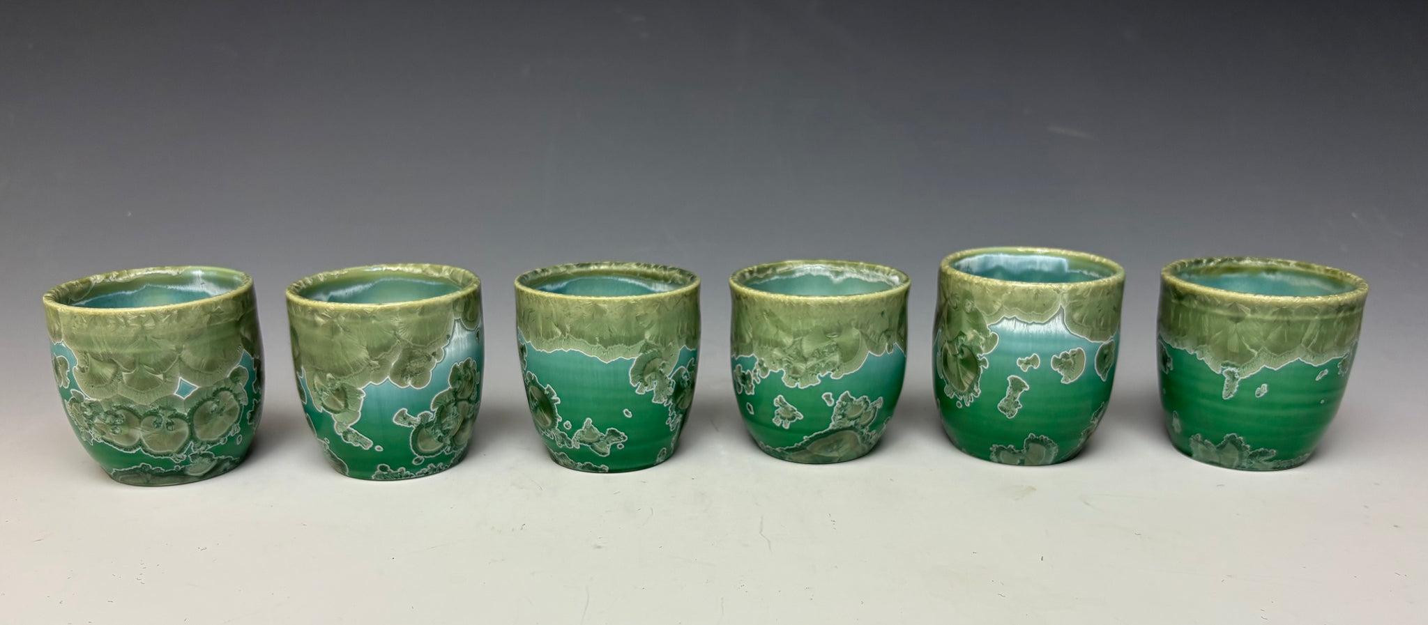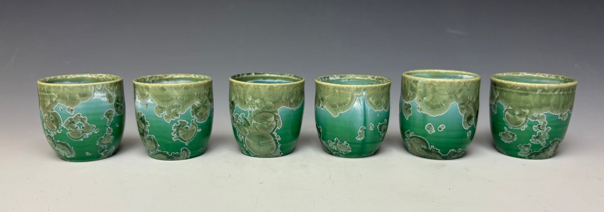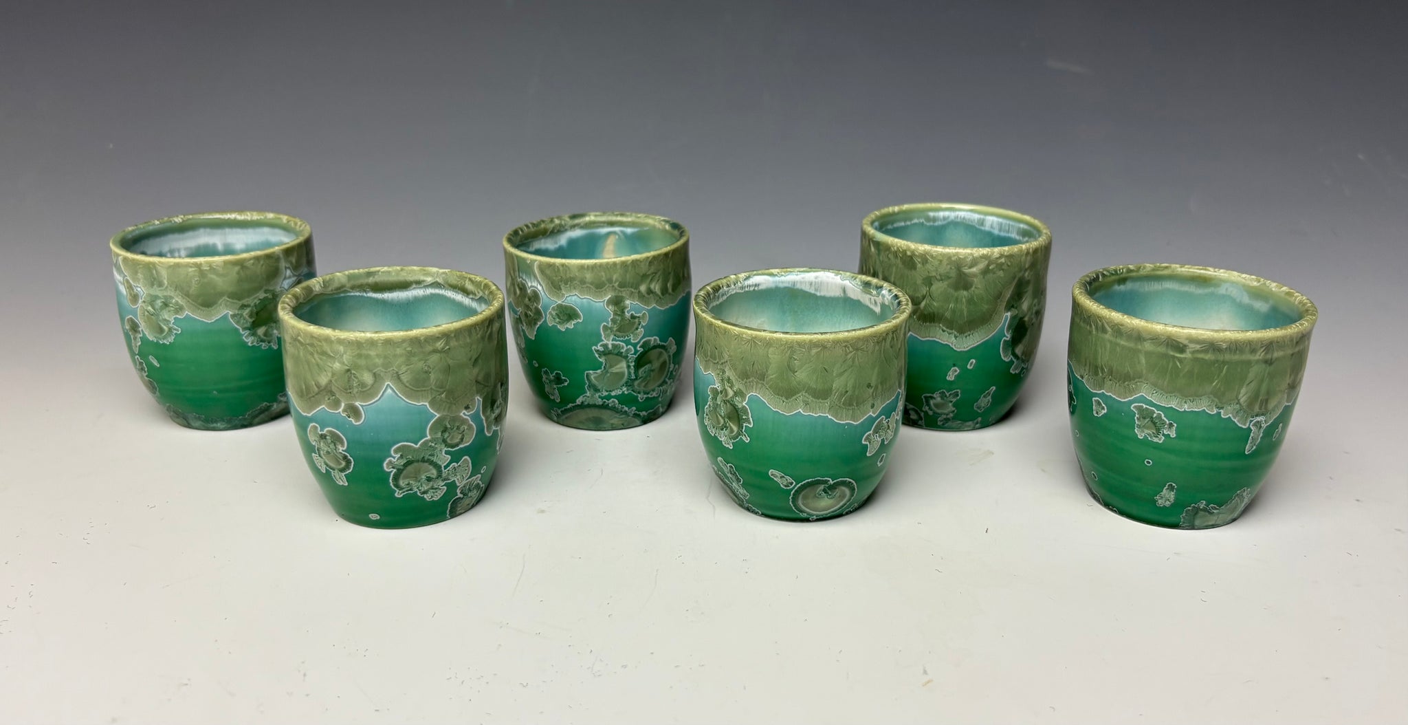 Due to the unique nature of crystalline glazes, no two pieces are ever alike. The crystals are actually grown during the firing and cooling process (which reaches over 2300 degrees Fahrenheit). The time and temperature must be accurate in order to achieve crystal growth on the piece. Each piece is unique!