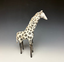 Once cool, the horse was removed from the can and cleaned to show the colors of the horse. There is a wire in the head and tail, but the giraffe is hollow. This sculpture is free-standing. Each one is handmade so there are never two alike.